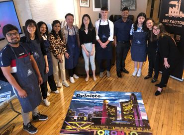 We travel to you anywhere downtown and further afield as an add-on option. Everything your team will needs shows up with us and leaves after except the art and the memories you make.